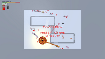 This is a hyper fast top-down shooter that aims to remove all limits. Moving with your mouse cursor means infinite speed and precision. Enemies with faster-than-human reactions will hunt you down, surround you, bombard you with grenades and rockets.